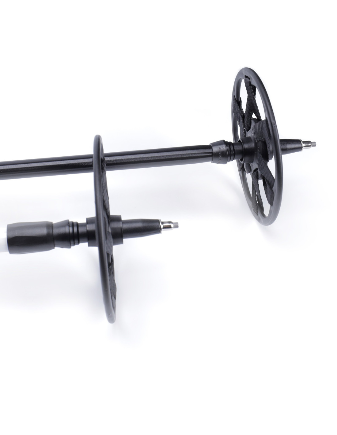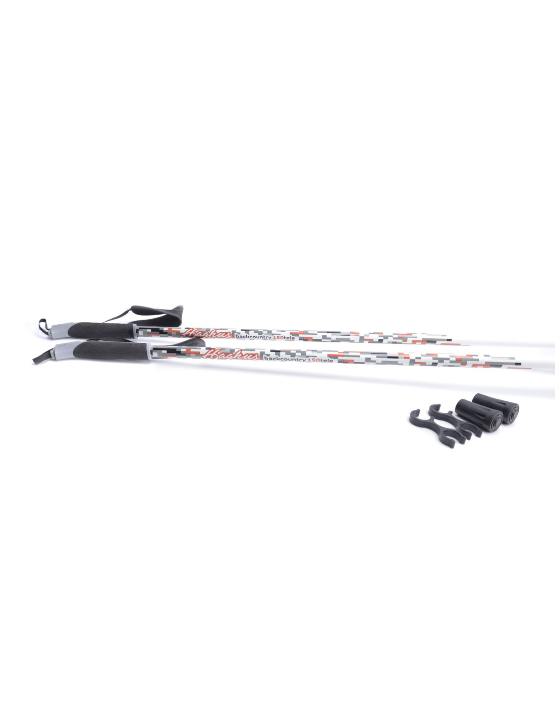 Stavar med en stark 2-delad aluminiumram. Stavarna har en justerbar längd upp till 150 cm. I det kortaste justeringsläget är stavarnas längd 90 cm. Stavarna har ett slutet handtag och är även avtagbara. Stavarnas handtag känns bekväma och passar allas händer. Stålspikar i ändarna har ett avtagbart gummiskydd.